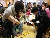 給食週間のある1月は、給食委員会の取組がたくさん予定されています。今日の昼休みは、2階のオープンスペースで、「食育カルタ」のミニ集会がありました。