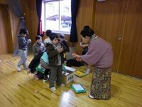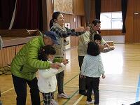 前半はグループに分かれて、メンコ・こま・ベーゴマ・おはじき・お手玉・けん玉・あやとりに挑戦!!