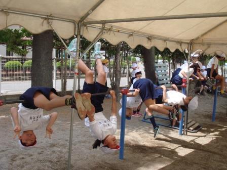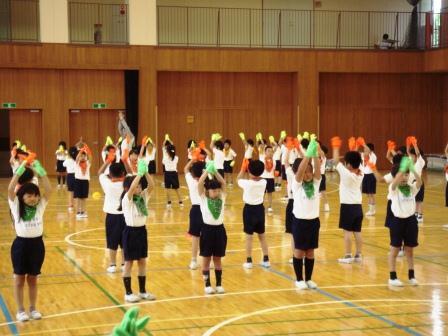 1年生:バンダナをつけて 2年生:動きを確かめて