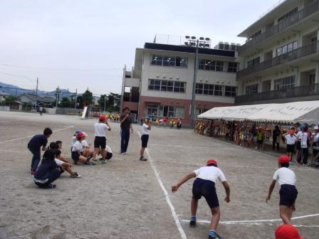 5年生:手首のバンダナをふって これは、作戦会議中の6-3