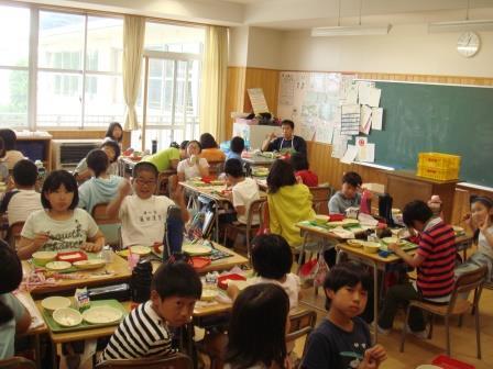 給食時間にも、実際の献立・食材をいただきながら、伊東先生のお話が聞けました。