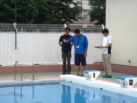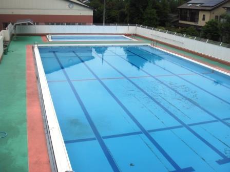 プールに向かってみんなで黙想。プール学習中の安全を祈りました。