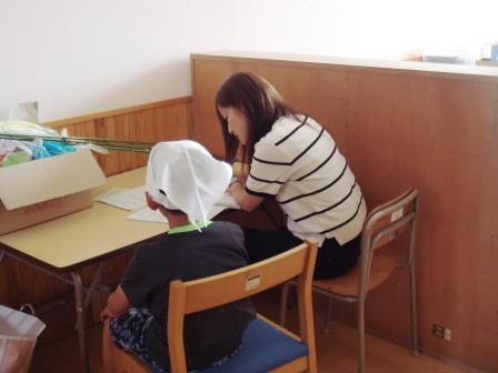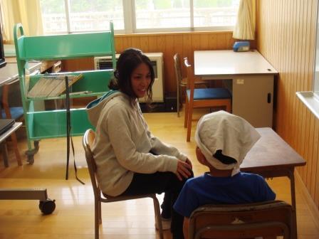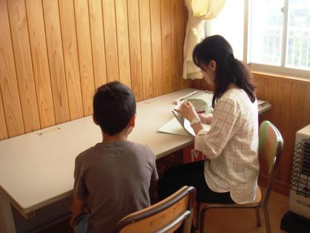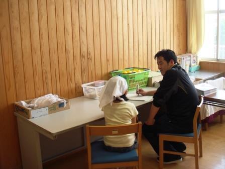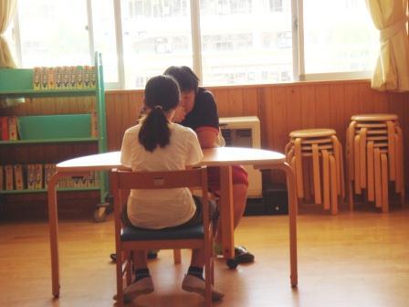 校舎の中では、先生が一人一人お話を聞いてくれる”ふれあい面談”中です。