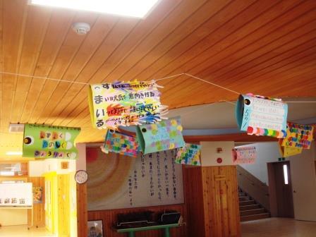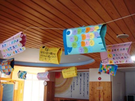 昇降口には、今年も、クラス目標の鯉のぼりが飾られました。