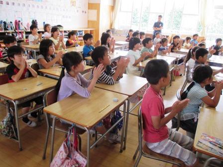 伊東先生のお話を聞き クイズに挑戦し おはしの持ち方の説明をうけ