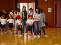 次は、フラフープリレー。親子で呼吸を合わせ、楽しくできました。