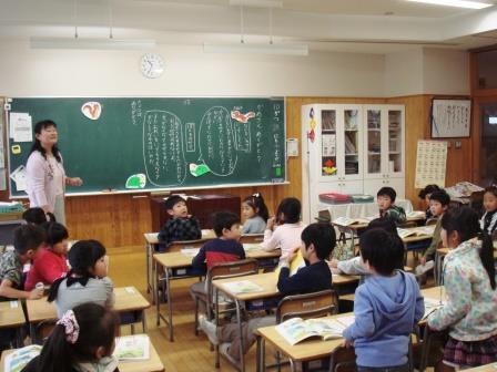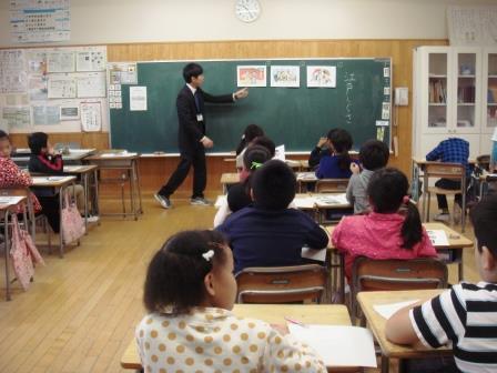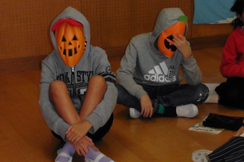 2年生です。今日の外国語活動は「ハッピーハロウィン」ということで、ハロウィンについての学習でした。