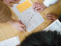 住宅地図をのぞきこんだり、黒板に地図を描いて場所を確認したり・・・。