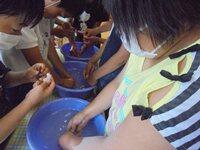 6月8日に勾玉作りが行われました。一生懸命石を磨いて、ぴかぴかの勾玉ができあがりました。みんな満足そうに首からぶら下げて帰りました。