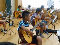 音楽体験:ギターに挑戦、最後は全員で演奏に成功?しました。