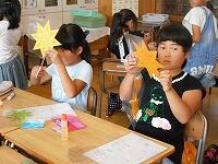 科学教室:葦を使って笛を作成、音階もしっかりとれています。