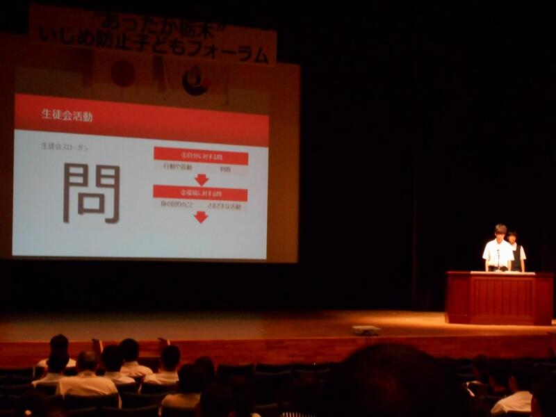 開会の後、岩舟小学校と栃木東中学校からの実践発表がありました。