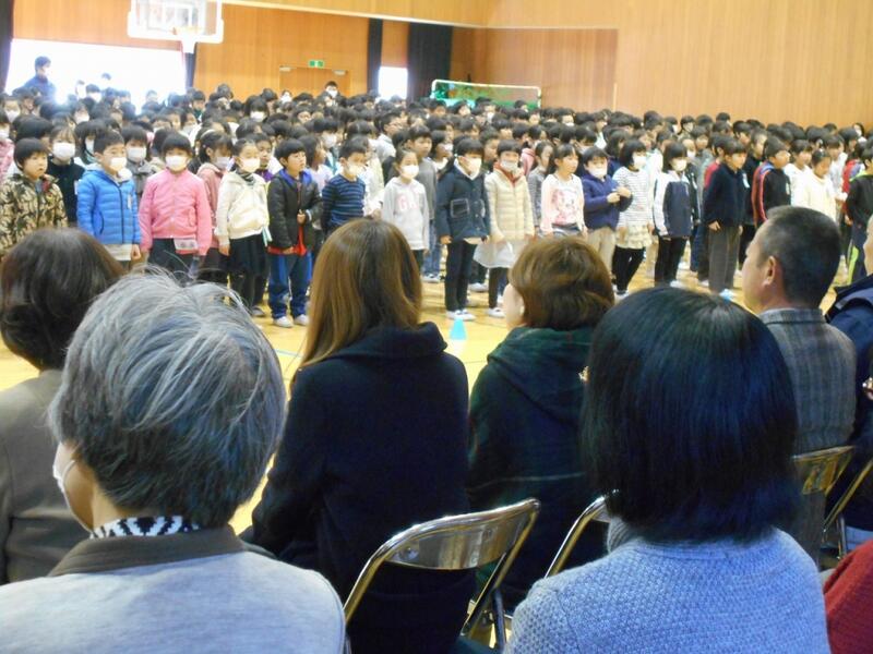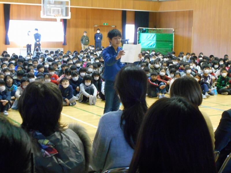 感謝の気持ちを込めて、代表児童の作文発表と歌「ビリーブ」のプレゼント