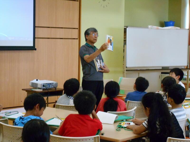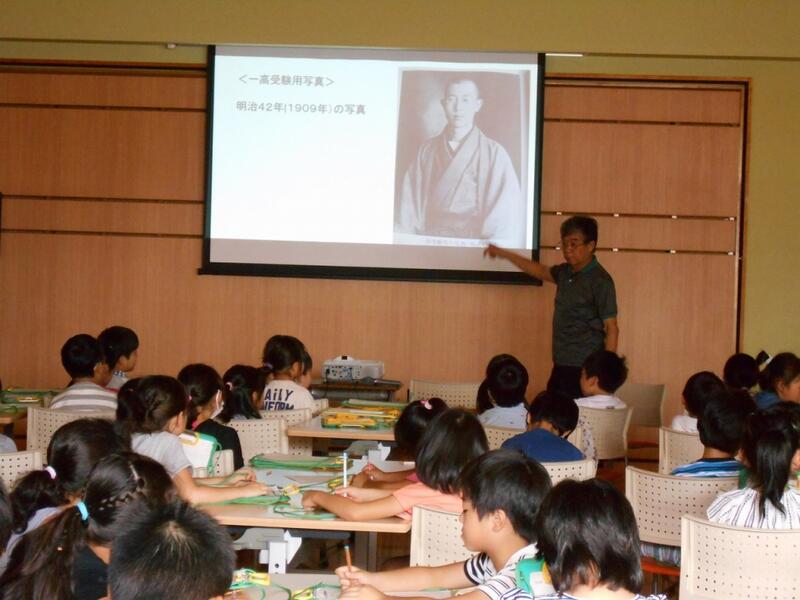 有三先生の生い立ちから趣味、様々な功績などについて丁寧に教えていただきました。また、作品なども紹介していただき、子どもたちも熱心に聞き入りました。