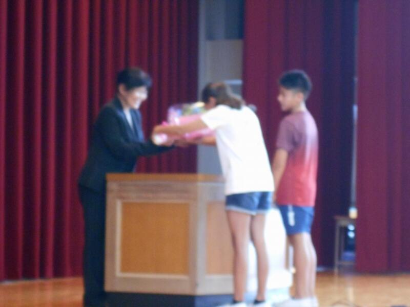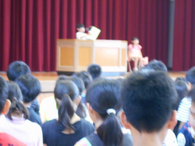 終業式では、代表として1年生と3年生の児童が、1学期を振り返って作文を発表しました。二人とも勉強や友達づくりを頑張り、充実した1学期を過ごすことができたようです。