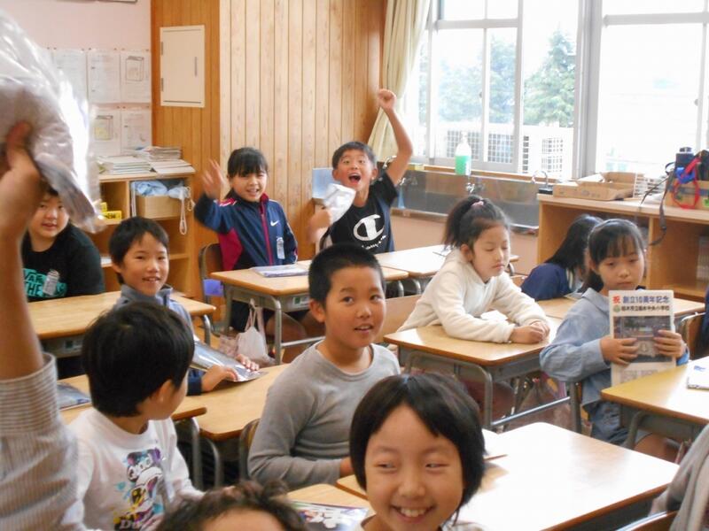 その後、担任から、クリアファイルや記念誌、タオルなどの記念品を受け取りました。