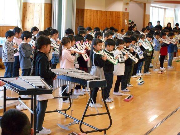 音読や計算、楽器演奏や運動など、これまで学習してきた、様々な学習の発表をしました。特に和太鼓演奏は、ボランティアの方にお世話になり1月から練習を重ねてきました。学年に応じて難しいバチさばきも見事にこなしており感動的でした。最後に、全員による「パプリカ」のダンスで締めくくりました。