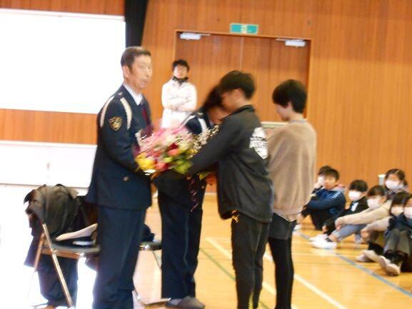 児童を代表してお礼の言葉を述べ、プレゼントをお渡ししました。