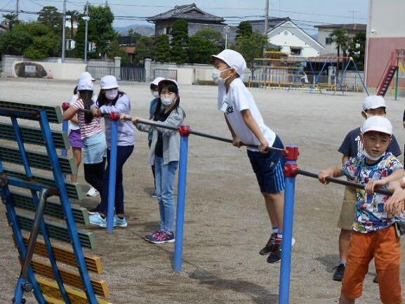 逆上がりや後ろ回りに挑戦していました。頑張って!もう少し!継続することが出来るようになるいちばんのポイントかな。