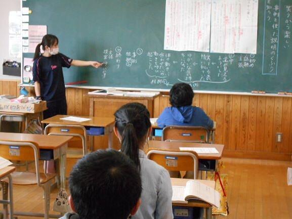 こちらは6年生、国語の「聞いて、考えを深めよう」と説明文「笑うから楽しい」の学習をしていました。夏休みが短縮されることに対する自分の考えを書いていましたが、ほぼ全員が「賛成」とのことです。すこい!