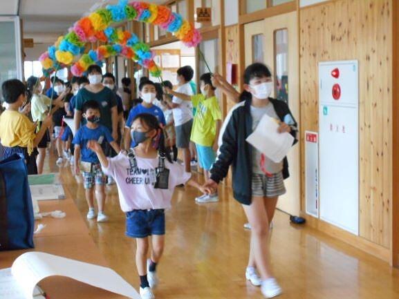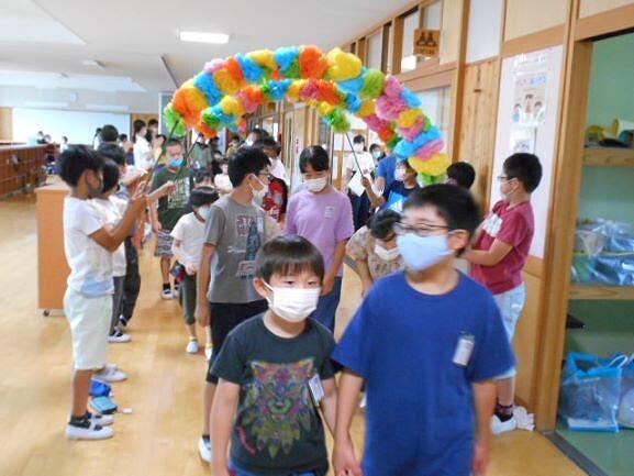 最後にメダルを1年生にかけて、みんなで拍手を送りました。ピカピカのメダル、これから勉強や運動を頑張り、たくさんの友達と仲良く生活しながら、メダルのようにキラキラ輝く1年生になってくださいね。