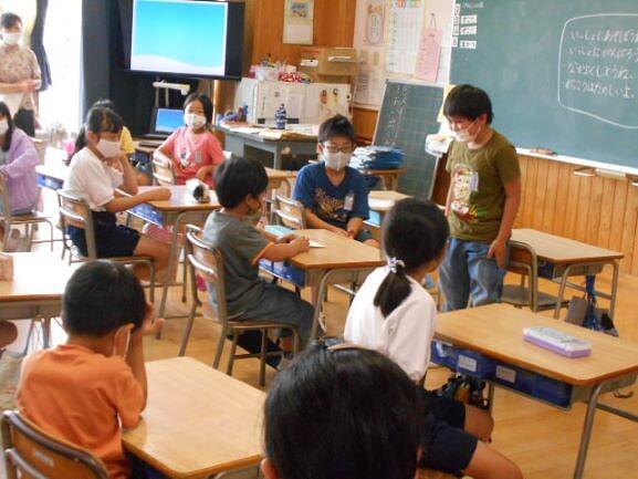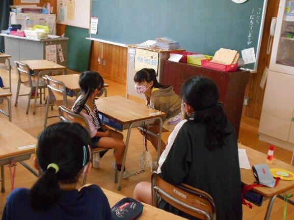 小雨の中、多くのボランティアの方々の協力の下、生活科のまち探検に出かけてきました。できるだけ少ない人数で歩けるようにグループ編成をし、感染症対策も配慮しながらの学習でした。多くの町の方々にも御協力いただき、充実した時間を過ごすことができました。