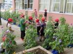 7月の半ばだというのに、まだまだ梅雨明け宣言がされませんが、ちょっとした晴れ間に子どもたちの外での活動が行われています。今日は、1年生が生活科で外で学習しました。ちょうどあさがおの開花がピークで、ピンク・むらさき・青など様々な色が広がる中、観察をしたり色水づくりをしたりしていました。