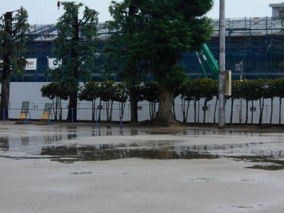 今日は、久々にまとまった雨が降りました。おかげで、校庭には大きな水たまりも。でも、花壇の花は嬉しそうでした。
