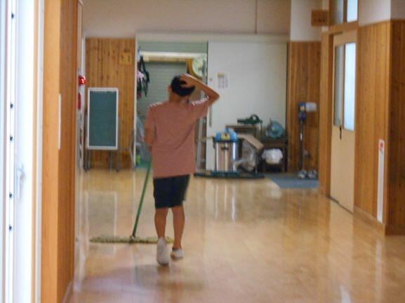 登校するとすぐ、6年生が学校の顔でもある昇降口付近の清掃をしています。