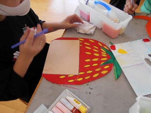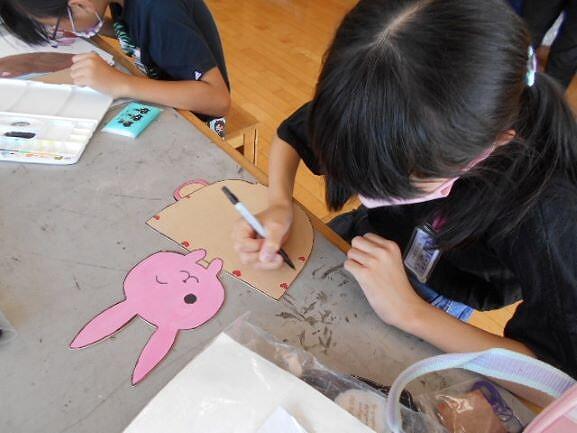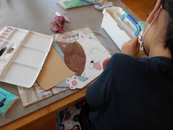 曲線を切るのは特に難しいですね。でも、中には線に沿ってとても上手に切れる児童もいます。切り終わったらきれいに色を塗って、仕上げます。