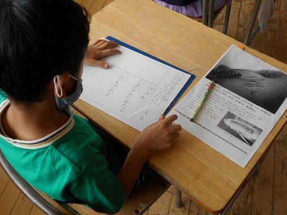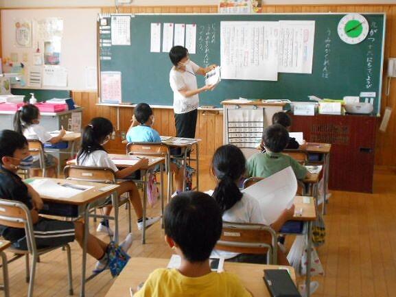 1年生の様子です。国語の勉強をしていますね。「うみのかくれんぼ」です。