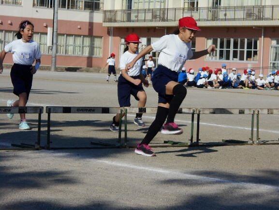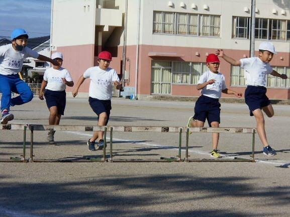 最初の障害物はハードルです。転ばないように気を付けてね!