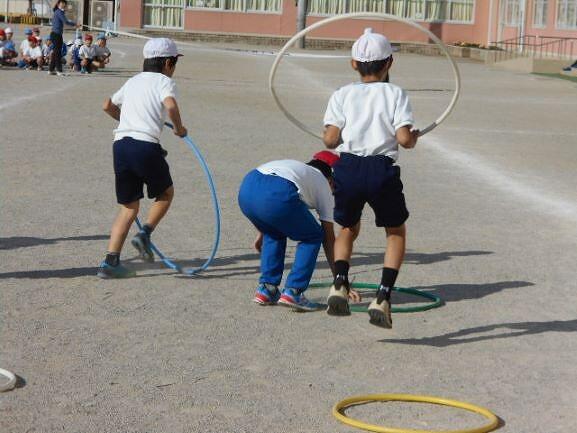 最後はフラフープなわとび5回。様々な障害を乗り越えて、ゴールを目指します。