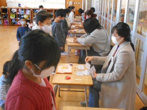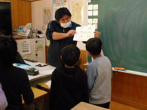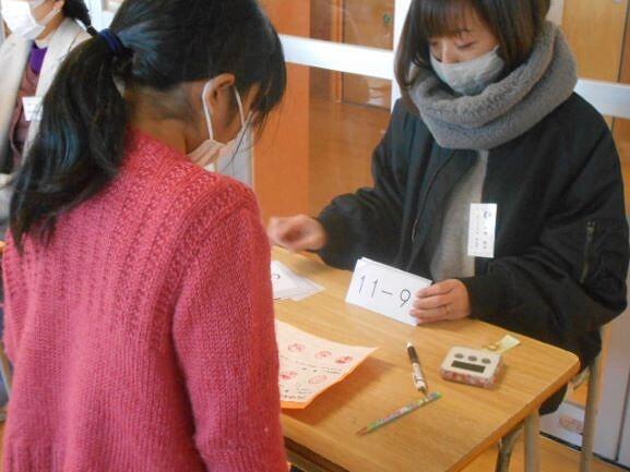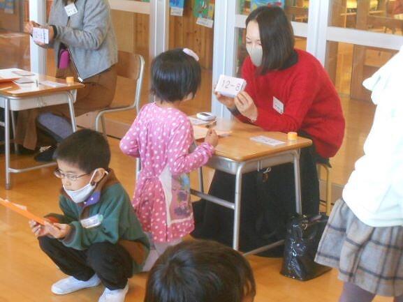 計算カードを見て素早く答えを言います。3つのコースに挑戦。だんだん難しくなっていきます。しかも、時間は1分間。みんな真剣にチャレンジしていました。たし算やひき算も計算の基本、これからの学習の基礎になります。正しくできるよう、しっかり覚えてくださいね。