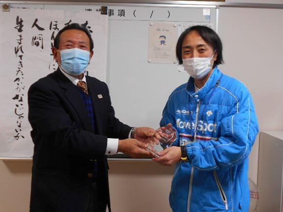 栃木陸上競技協会 渡邊方夫 理事長より、表彰状と記念章を授与していただきました。おめでとうございます。今後のますますの活躍を期待します。