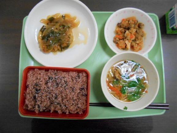 「赤飯」と「しもつかれ」、それと「もろの甘酢あんかけ」「濃しょう汁」でした。