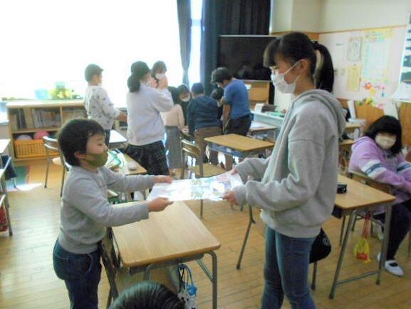 今年のプレゼントは、班のみんなのメッセージが入った2021年度のカレンダーでした。これから1年間、このカレンダーを使って中央小のことを思い出してくださいね。
