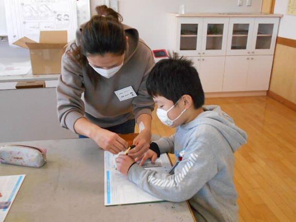 慣れないカッターも、大人の人に見守られ、優しく教えていただいたおかげで、安心して使うことができました。カッターが上手に使えるようになると、作品づくりの幅が大きく広がりますね。