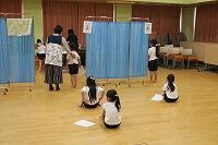 には、毎日たくさんの児童が本を借りに来ています。残念ながら読書できる座席・スペースが図書室にはないので、自分の教室に戻ってから読書