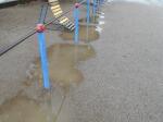子どもたちも、普段の学校生活から、校庭のどの辺りに水が流れていくのか大体分かっているようでした。