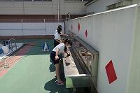 もあります。明日の本格的なプール清掃を前に、今日は清掃の時間を使って、外山先生と外掃除