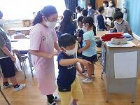 、一人一人の首にかけてあげました。1年生もニッコリ笑顔