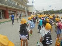 2年生と5年生は校庭の種目から始まります。みんなで準備運動をしたら「お願いします。」元気にあいさつして始まりました。