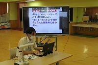 各教室では、大型テレビの画像を通して、しっかりとお話を聞くことができていました。