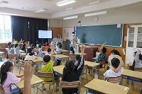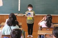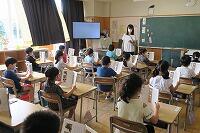 今日は、学力向上コーディネーターの鶴見先生をお招きして、4時間目に1の2のみなさんが、国語