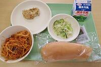 は「コッペパン・いちごジャム・牛乳・茄子とトマトのスパゲティ・鶏肉のハーブ焼き・キャベツともやしのサラダ」でした。