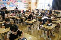 で聞いています。今日勉強する「たこのかくれんぼ」の音読も元気に