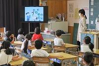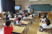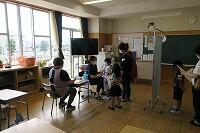 今日は1年生が「ただしいたぶれっとのつかいかたをしろう」の」授業を行っていました。情報モラルに関する動画を視聴した後、みんなでどうしたらよいのかを考えました。