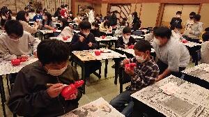夕食後の活動は「赤べこ絵付け体験