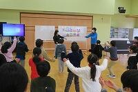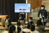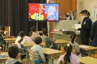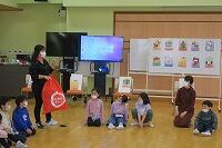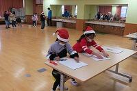 2年生の外国語活動、今日は日惜ホールに集合していました。今日の活動は「Christmasを楽しもう」です。授業の始まりでは、みんな元気に歌を歌ったり、体を動かしたりして、英語に親しんでいました。